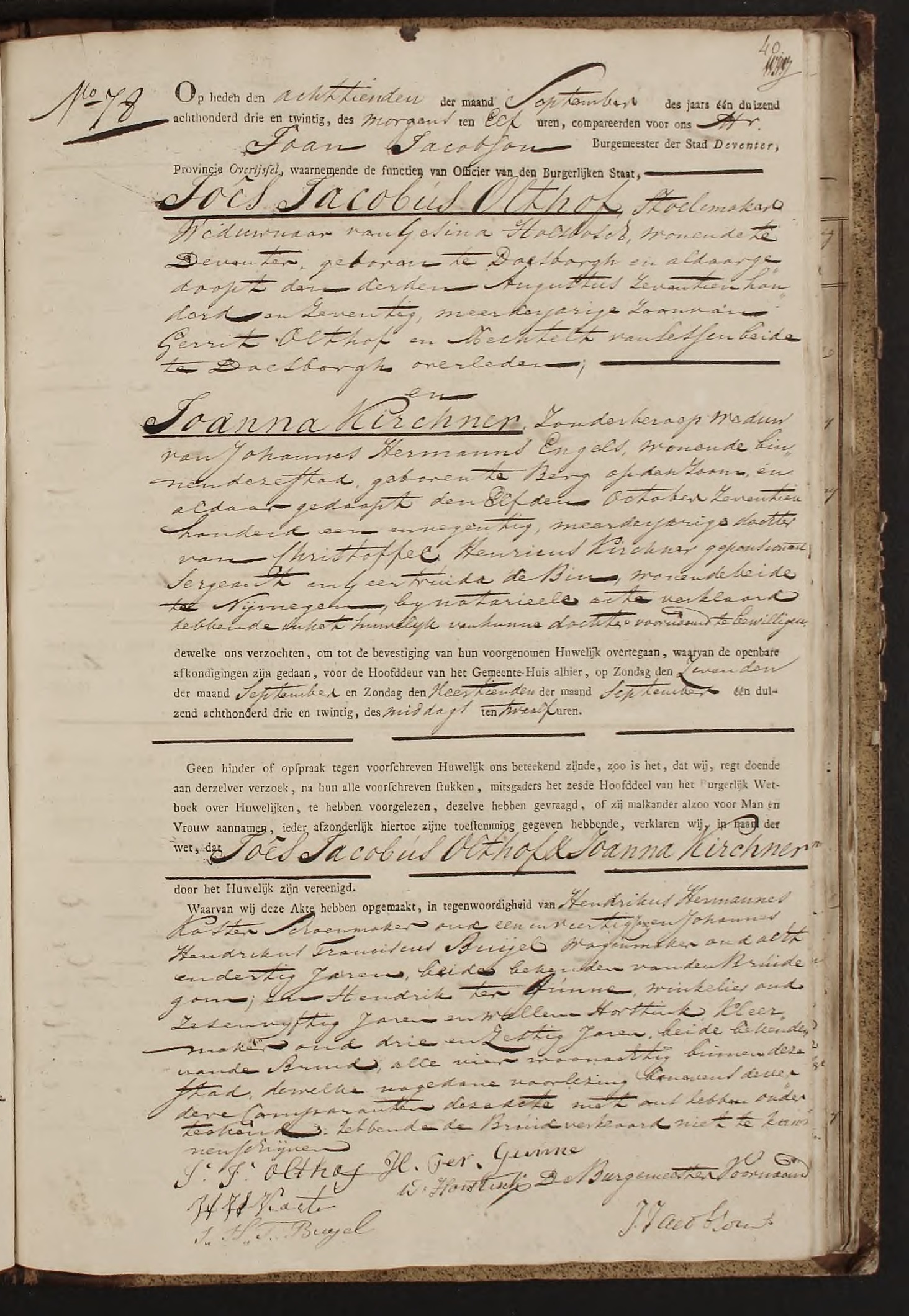 | 3 | Johannes Jacobus Olthof | 03-08-1770 Doesburg | 18-09-1823 Deventer | 28-04-1831 Deventer |
