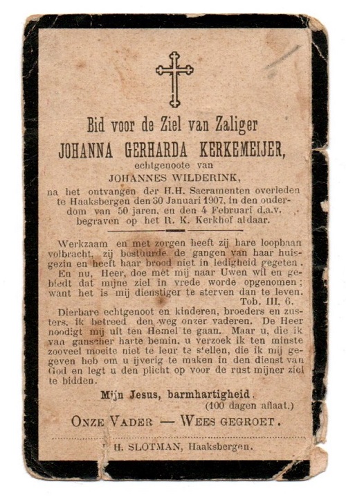 | Johanna Gerharda Kerkemeijer | 05-07-1856 Haaksbergen | 30-01-1907 Haaksbergen | ||